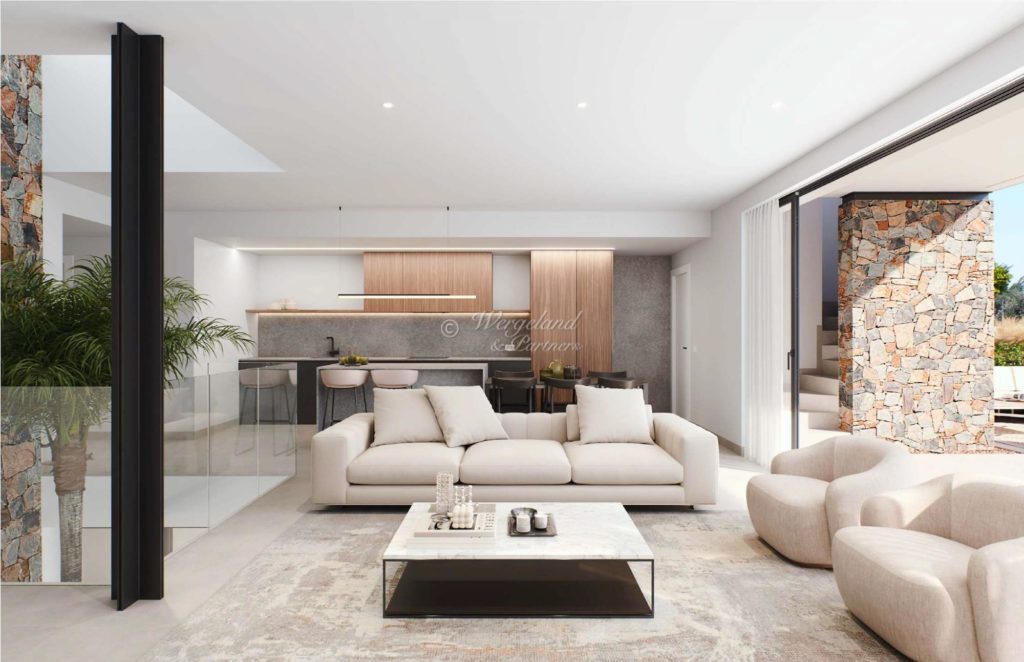 20 ett plans eneboliger med sydvendt parkutsikt inne på Santa Rosalia. Privat basseng, 57,50 m2 takterrasse og 119 m2 underetasje (råkjeller). Boareale 121 m2 fordelt på 3 sov/2 bad. Ferdigstillelse Q4 2024. Pris fra 377.000€ til 465.000€